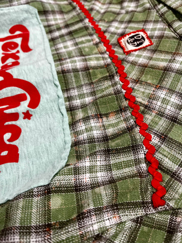 Embellished Green Flannel Plaid Texas Chica Shirt, XL