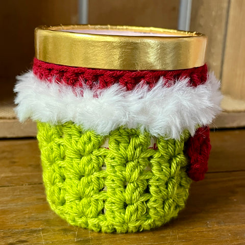 This handmade crocheted ice cream cozy fits a standard pint of ice cream and adds a fun, festive touch to your Christmas season. Inspired by everyone’s favorite grumpy green holiday character, this cozy makes the perfect gift for movie lovers, ice cream fans, teachers, coworkers, or anyone who enjoys a cozy night in during the holidays.