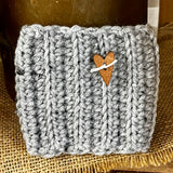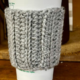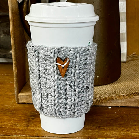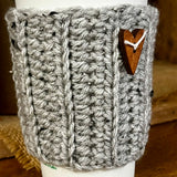 Handmade Crochet Coffee Cozy - Grey with Heart Button