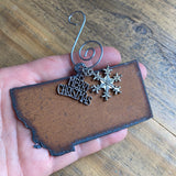 Materials used: State shapes are cut from steel and treated to have a rusty look. Most of our antiqued silver charms are zinc alloy.