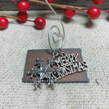- TWO antiqued silver charms -- Merry Christmas & snowflake