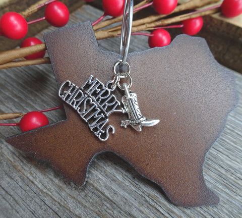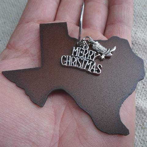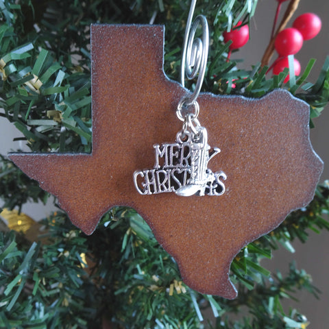 Texas Christmas Ornament with Merry Christmas & Boot Charms, LARGE