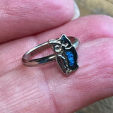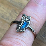Vintage Silver Owl Pinkie Ring – Tiny Turquoise Stone, Size 3